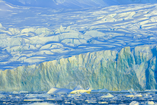 an angle of 20 to 30 degrees. The melt-water along this front,